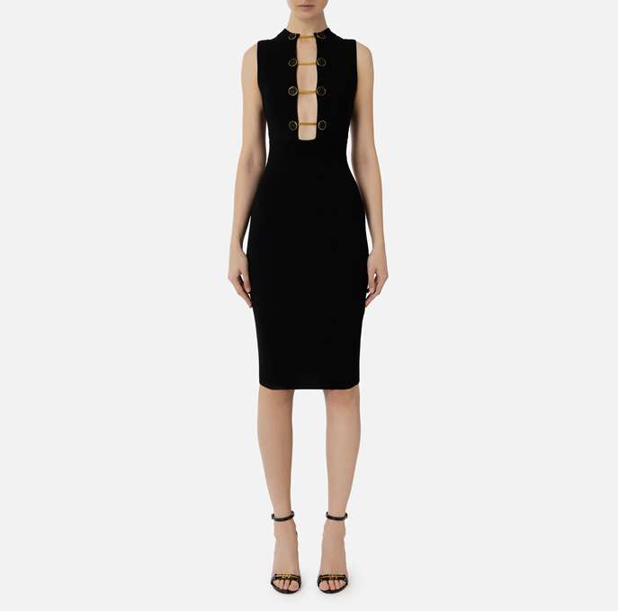 ELISABETTA FRANCHI AM50S41E2 Abito midi in viscosa con bottoni gemello
