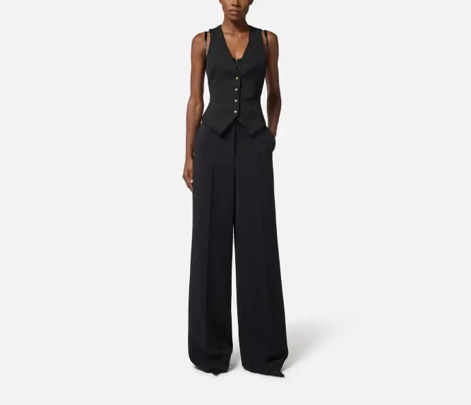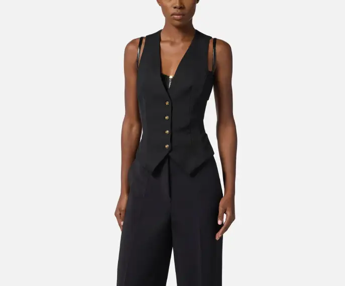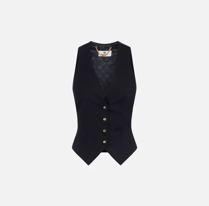 Gilet in gabardina di cotone dalla vestibilità aderente. La sua linea classica sorprende con dettagli inediti come l’elastico e il lettering ispirazionale stampato sul retro in colore a contrasto. Chiusura con bottoni effetto corno.