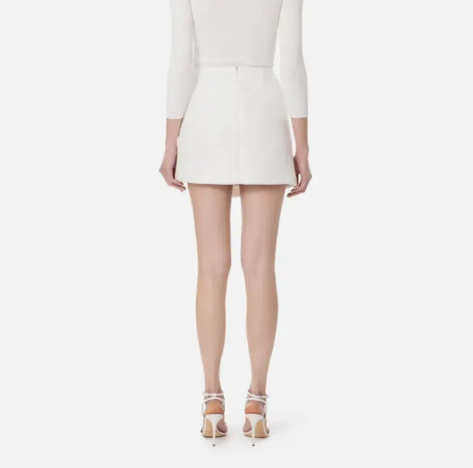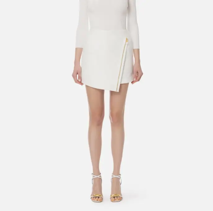 Minigonna in rafia con linea a portafoglio. Si distingue per l’elaborato motivo a losanghe e la zip con cursore logato in tono sul davanti. Vestibilità regular.
