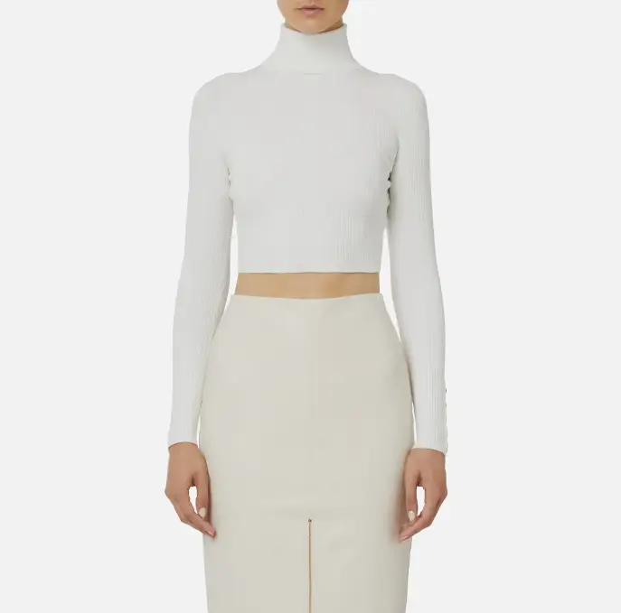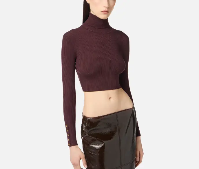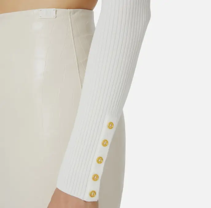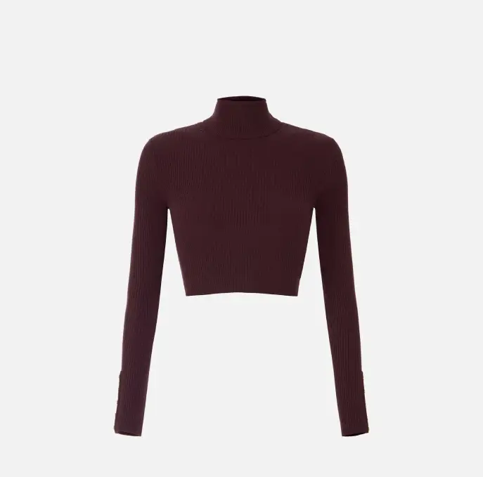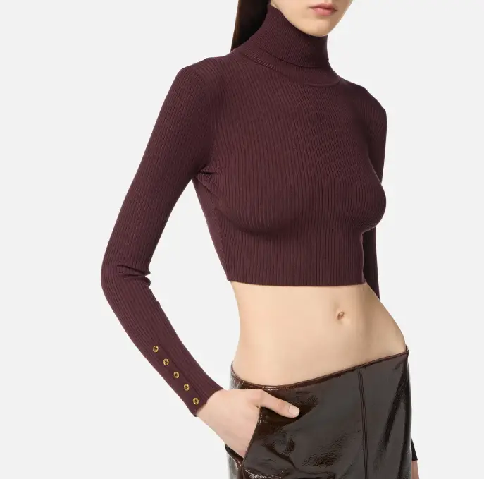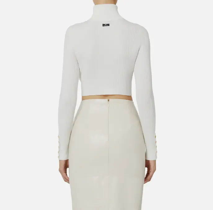 Maglia a coste dalla vestibilità aderente. Il capo ha collo dolcevita, maniche lunghe rifinite a costine e polsi personalizzati con bottoni per un dettaglio di stile in più.