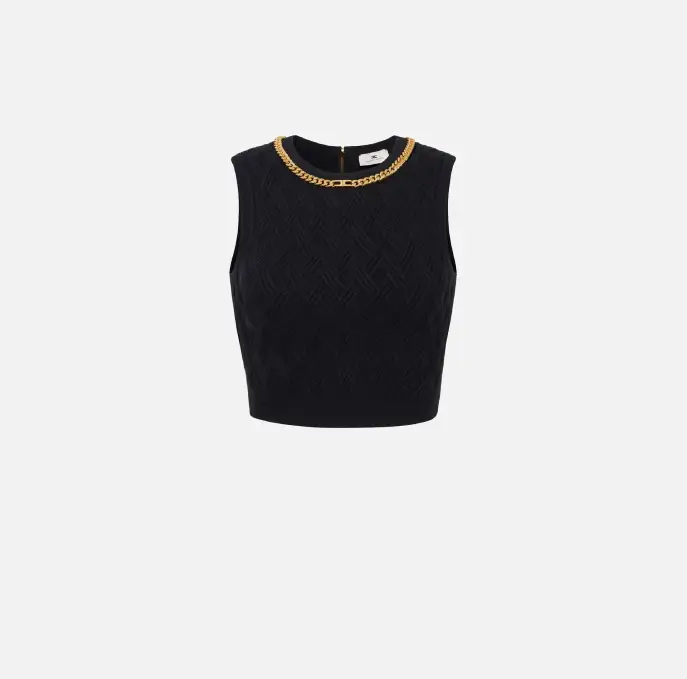 ELISABETTA FRANCHI TK60B56E2 Top in maglia a rombi con dettaglio gioiello